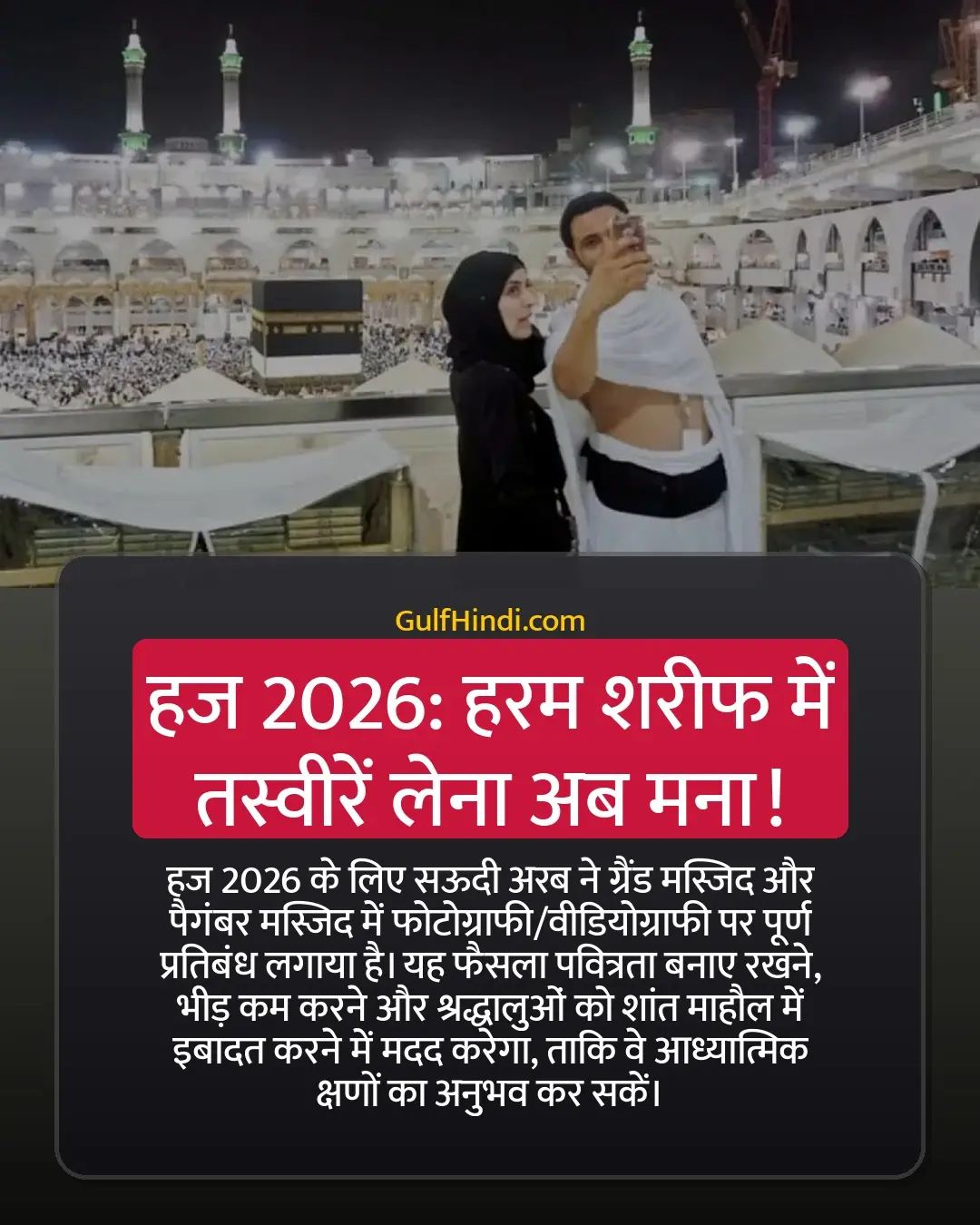 - हज-2026 के लिये मक्का-मदीना में फोटो व वीडियो पर नई पाबंदियाँ लगी हैं।