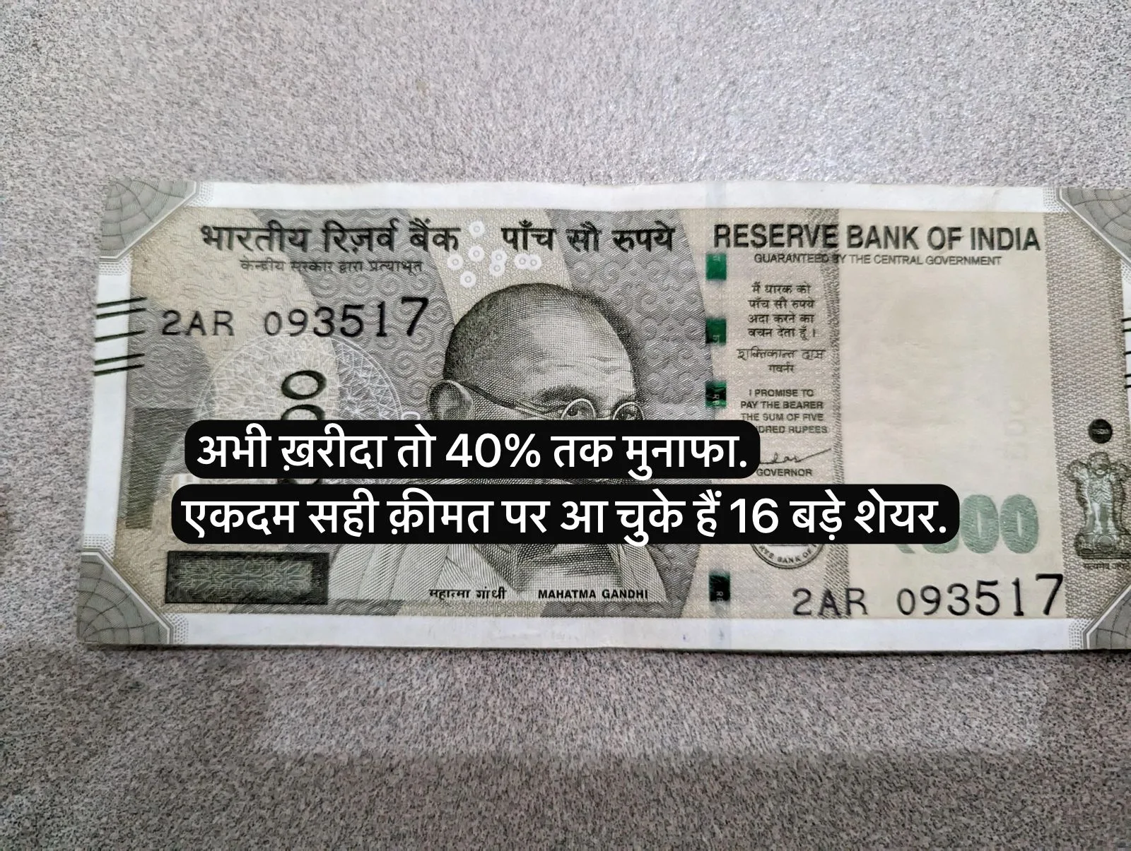 गिरावट के बाद सही दाम पर आ गए हैं 16 स्टॉक. अभी सस्ते में ख़रीद लिया तो साल भर 40 प्रतिशत तक चढ़ेगा भाव.
