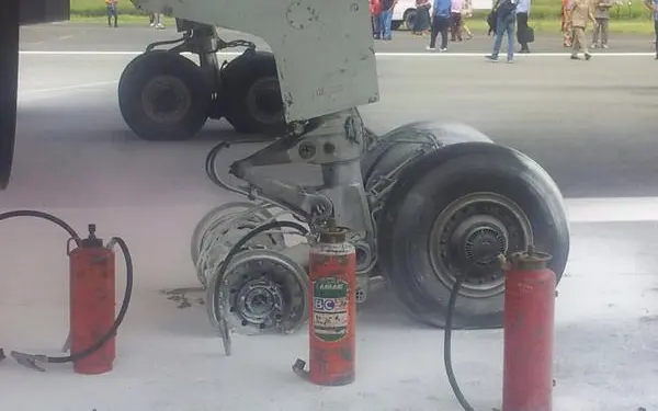 तीन टायर फटे, इंजन काउलिंग को भी नुकसान
