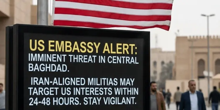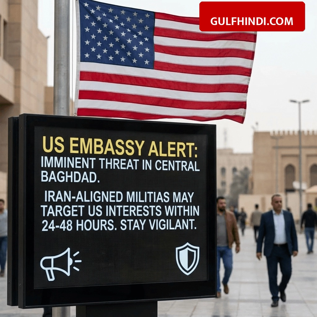 Baghdad में सुरक्षा व्यवस्था को लेकर एक बड़ी और गंभीर चेतावनी जारी की गई है। अमेरिकी दूतावास ने सूचना दी है कि ईरान समर्थित मिलिशिया गुट अगले 24 से 48 घंटों के भीतर मध्य बगदाद में बड़ा हमला कर सकते हैं। यह सुरक्षा अलर्ट गुरुवार, 2 अप्रैल 2026 को जारी किया गया है। इसमें कहा गया है कि अमेरिकी नागरिकों, राजनयिक ठिकानों, एयरपोर्ट और कई अन्य सार्वजनिक संस्थानों को निशाना बनाया जा सकता है। क्षेत्र में बढ़ते तनाव को देखते हुए वहां रह रहे लोगों को बेहद सावधान रहने के लिए कहा गया है।