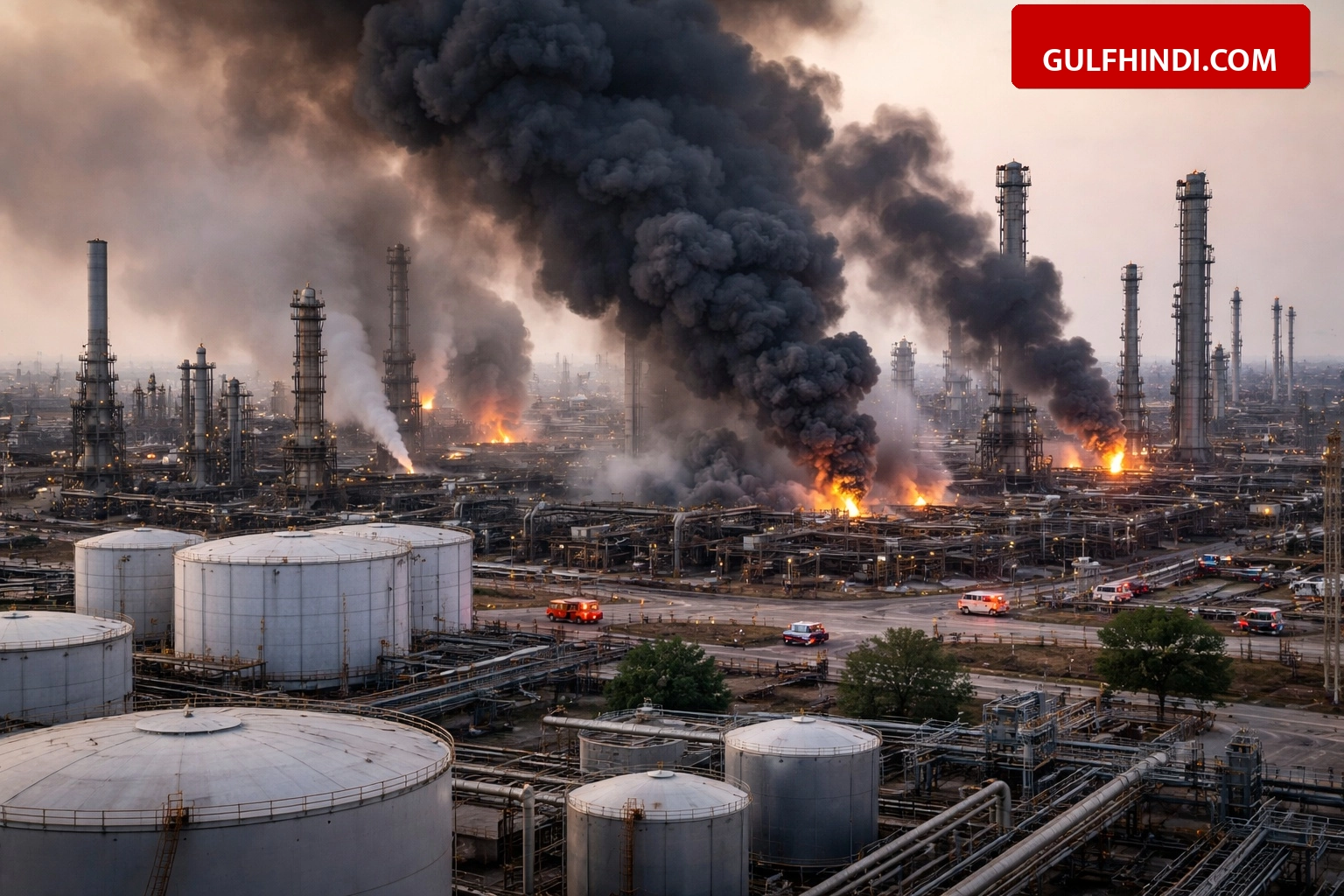 रिफाइनरी में आग और बचाव कार्य