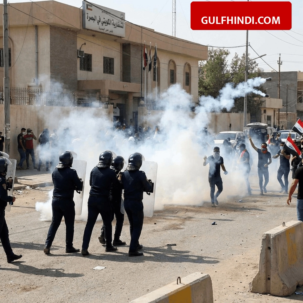 Basra में Kuwaiti Consulate पर हमला, प्रदर्शनकारियों ने हटाया झंडा, पुलिस ने छोड़े आज आंसू गैस के गोले