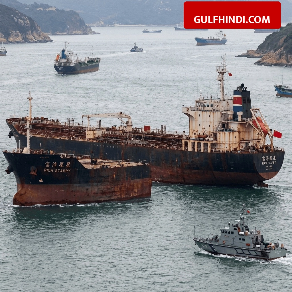 अमेरिका की पाबंदियों और नाकेबंदी के बावजूद चीनी टैंकर Rich Starry स्ट्रेट ऑफ हॉर्मुज़ से निकलने में कामयाब रहा. यह जहाज UAE के हमरैया पोर्ट से करीब 2.5 लाख बैरल मेथनॉल लेकर जा रहा था. सोमवार को शुरू हुई अमेरिकी नाकेबंदी के बाद यह पहला प्रतिबंधित जहाज है जो खाड़ी से बाहर निकला है.