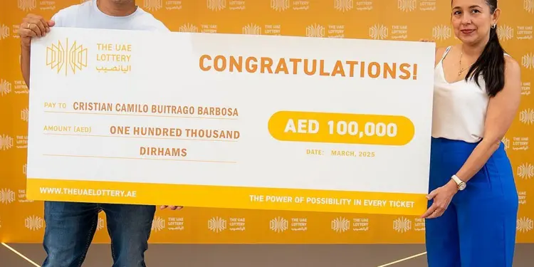 संयुक्त अरब अमीरात में आयोजित UAE Lottery draw में लेबनान और कोलंबिया के दो प्रवासियों ने ईनाम जीत लिया है। उन्होंने इस प्रतियोगिता में Dh100,000 का ईनाम जीत लिया है। दोनों प्रवासी अपनी इस जीत से काफी खुश हैं और रकम का इस्तेमाल अपनी बेहतरी के लिए करेंगे।