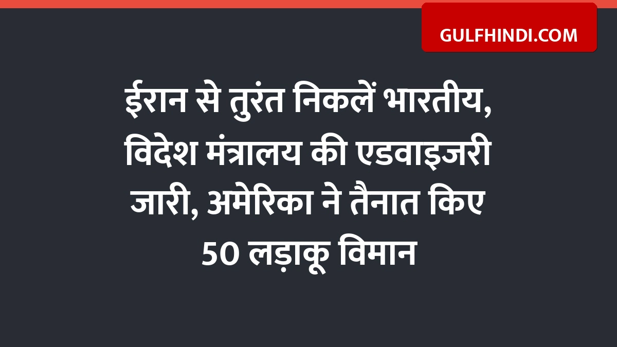 ईरान से तुरंत निकलें भारतीय, विदेश मंत्रालय की एडवाइजरी जारी, अमेरिका ने तैनात किए 50 लड़ाकू विमान
