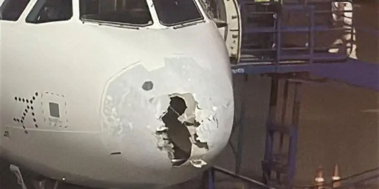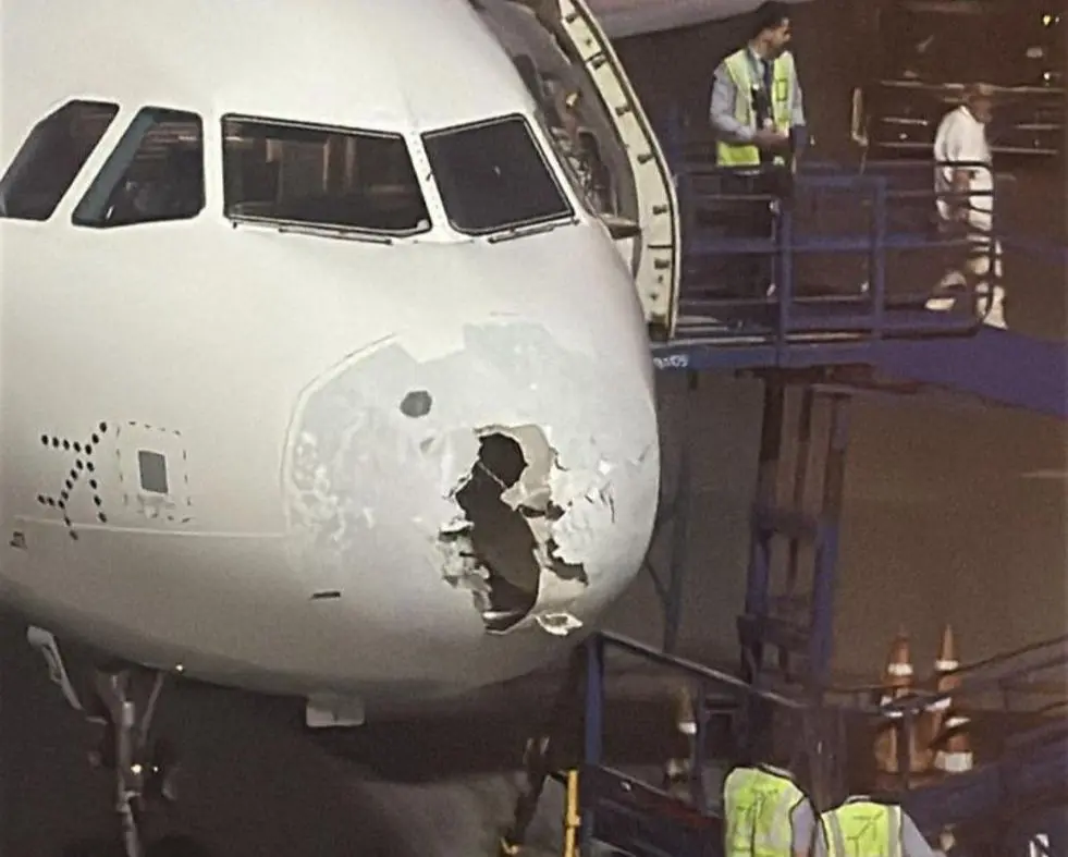 दिल्ली से श्रीनगर जा रही एक इंडिगो फ्लाइट उस वक्त हादसे का शिकार होते-होते बच गई जब वह हवा में एक अचानक आए भीषण ओलावृष्टि (हेलस्टॉर्म) की चपेट में आ गई। इस दुर्घटना में विमान की नाक (nose cone) को गंभीर नुकसान पहुंचा, लेकिन विमान में सवार सभी 200 से अधिक यात्री सुरक्षित हैं।