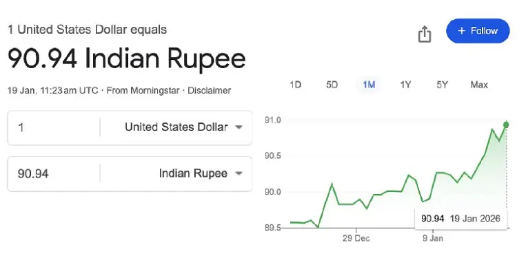 वर्तमान में, रुपया अमेरिकी डॉलर के मुकाबले 90.85 रुपये के स्तर पर कारोबार कर रहा है। विभिन्न विश्लेषकों का मानना है कि यह गिरावट जारी रह सकती है। कुछ सबसे निराशावादी दृष्टिकोणों के अनुसार, रुपया जल्द ही 92 रुपये तक गिर सकता है, जिससे आयात महंगा हो जाएगा और भारतीय अर्थव्यवस्था पर दबाव बढ़ सकता है।