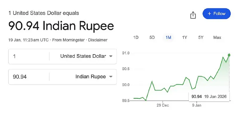 भारतीय रुपये के लिए पिछला वर्ष, 2025, निराशाजनक रहा। रुपया 2025 में 4.72% की वार्षिक गिरावट के साथ समाप्त हुआ, जो 2022 के बाद से इसका सबसे कमजोर वार्षिक प्रदर्शन था। यह लगातार दबाव में रहने वाले रुपये की कमजोर स्थिति को दर्शाता है और भविष्य के लिए चिंताएं बढ़ाता है।