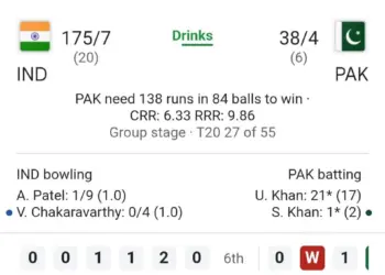 कोलंबो के आर. प्रेमदासा स्टेडियम में आज भारत और पाकिस्तान के बीच टी20 वर्ल्ड कप का हाई-वोल्टेज मुकाबला खेला जा रहा है। टॉस हारने के बाद पहले...