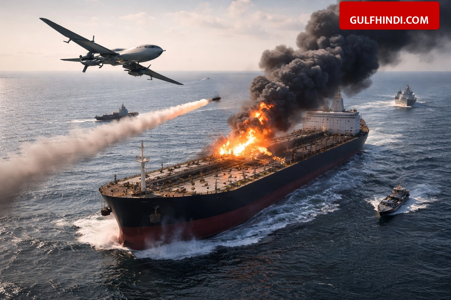 9 मार्च 2026 को ईरान की इस्लामिक रिवोल्यूशनरी गार्ड कॉर्प्स (IRGC) ने Strait of Hormuz में एक अमेरिकी तेल टैंकर पर ड्रोन से हमला किया. इस टैंकर की पहचान ‘Louis P’ के रूप में हुई है, जिस पर मार्शल आइलैंड्स का झंडा लगा था. ईरान के स्टेट टीवी के अनुसार, यह कार्रवाई तब की गई जब टैंकर ने ईरानी नौसेना की चेतावनियों को नजरअंदाज किया. इस घटना के बाद पूरी दुनिया में कच्चे तेल की कीमतों में भारी उछाल देखने को मिला है.