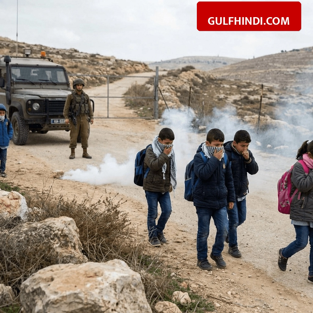 13 अप्रैल 2026 को इसराइली सेना ने उन स्कूली बच्चों की तरफ आंसू गैस और साउंड बम दागे जो अपने स्कूल पहुँचने की कोशिश कर रहे थे. बच्चों के रास्ते में अचानक एक बाड़ लगा दी गई थी जिससे उनका रास्ता रुक गया था. रिपोर्ट के अनुसार इलाके की मुख्य सड़क को भी वहां रहने वाले सेटलर्स ने ब्लॉक कर दिया था जिससे बच्चों और उनके परिवार परेशानी में पड़ गए.