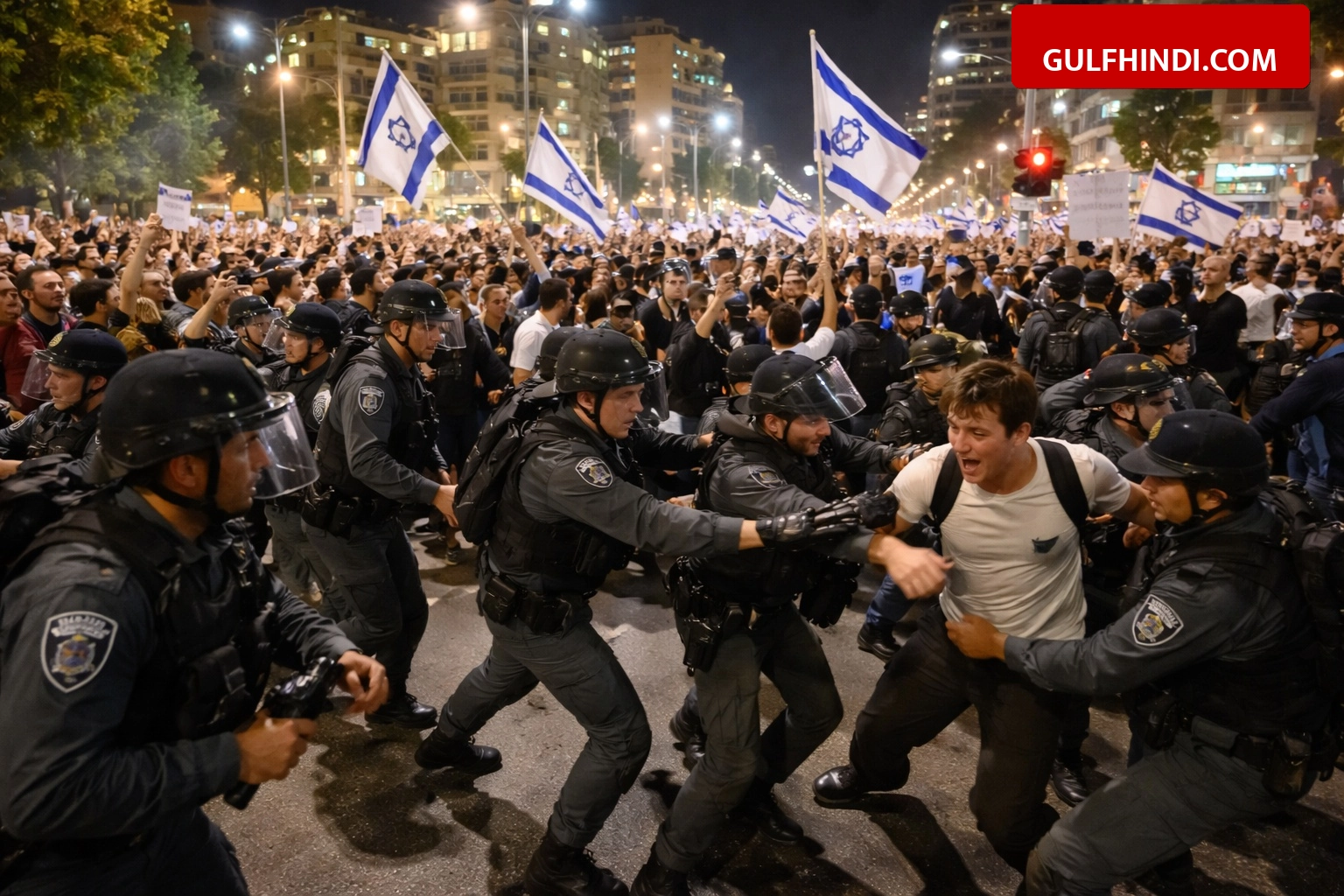 पुलिस का कहना है कि प्रदर्शनकारियों ने सार्वजनिक व्यवस्था को बिगाड़ने का काम किया और अधिकारियों के निर्देशों का पालन नहीं किया। Home Front Command के नियमों के अनुसार, मौजूदा सुरक्षा स्थिति को देखते हुए 50 से अधिक लोगों के एक जगह जमा होने पर रोक है। पुलिस ने स्पष्ट किया कि तेल अवीव में 13 और हाइफा में 5 लोगों को नियमों के उल्लंघन और अशांति फैलाने के आरोप में गिरफ्तार किया गया है। सुरक्षा कारणों से देश के कई हिस्सों में अभी भी इमरजेंसी रेगुलेशन लागू हैं ताकि मिसाइल हमलों के दौरान जान-माल का नुकसान कम हो।