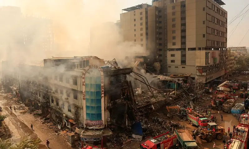 कराची के गुल प्लाजा में लगी भीषण आग से अब तक 26 लोगों की मौत की पुष्टि हुई है। इस घटना में 81 लोग लापता बताए जा रहे हैं। 17 जनवरी 2026 की रात करीब 10 बजे लगी यह आग 34 घंटे बाद बुझाई जा सकी। इमारत का ढाँचा अब कमज़ोर हो गया है और उसे आम लोगों के लिए असुरक्षित बताया गया है। बचाव कार्य अभी भी जारी है। पुलिस और सेना की टीमें मलबे से शव निकालने और लापता लोगों की तलाश में जुटी हैं। सरकार ने इस मामले की जांच के आदेश दिए हैं और मृतकों के परिवारों को मुआवजा देने की बात कही है। कई survivors ने बिल्डिंग की सुरक्षा व्यवस्था पर गंभीर सवाल उठाए हैं।