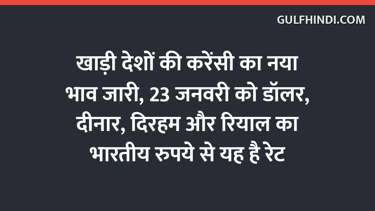 जनवरी 23, 2026 को खाड़ी देशों की प्रमुख करेंसी जैसे संयुक्त अरब अमीरात दिरहम, कुवैती दीनार और सऊदी रियाल के साथ-साथ अमेरिकी डॉलर का भारतीय रुपये के मुकाबले नया विनिमय दर जारी किया गया है। विभिन्न स्रोतों से मिली जानकारी के अनुसार, इन करेंसी के भाव में मामूली अंतर देखा गया है, जो दिन के समय और स्रोत पर निर्भर करता है। यह रिपोर्ट 23 जनवरी 2026 को अपडेट किए गए आंकड़ों पर आधारित है।