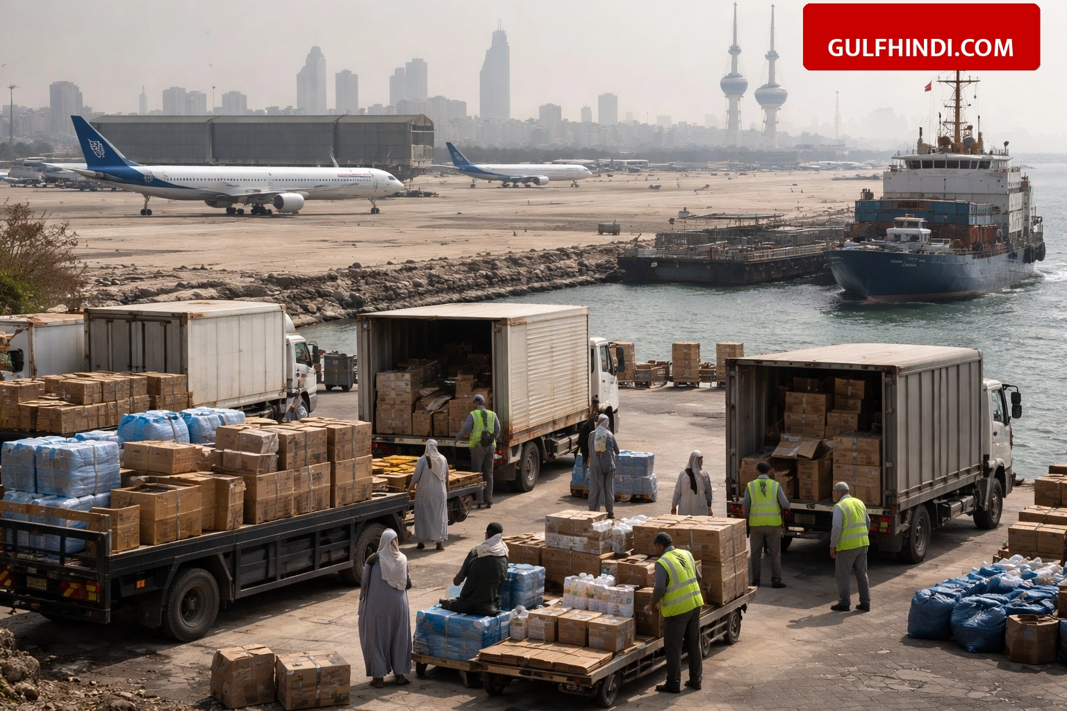 कुवैत में क्षेत्रीय सुरक्षा तनाव और एयरपोर्ट पर हुए ड्रोन हमलों के कारण हवाई यातायात को पूरी तरह सस्पेंड कर दिया गया है। देश में जरूरी सामानों और खाने-पीने की चीजों की कमी न हो, इसके लिए जनरल एडमिनिस्ट्रेशन ऑफ कस्टम्स (GAC) ने एक इमरजेंसी प्लान शुरू किया है। अब कुवैत में जरूरी सामानों की सप्लाई सड़क और समुद्री रास्तों के जरिए की जा रही है।