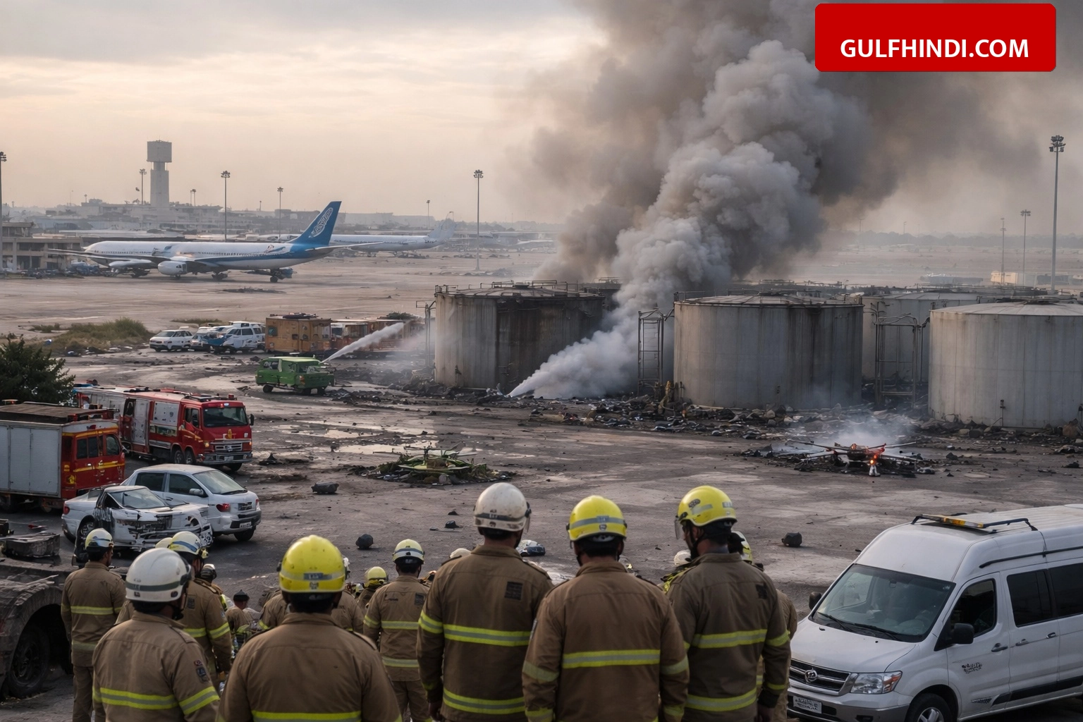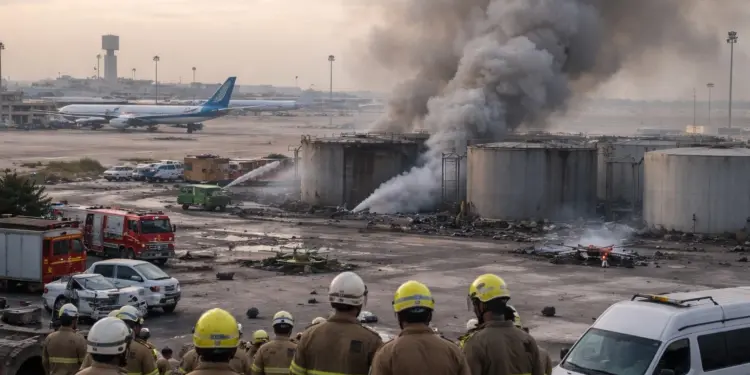 | 25 मार्च 2026 | एयरपोर्ट फ्यूल डिपो | ड्रोन हमला और भारी धुआं |