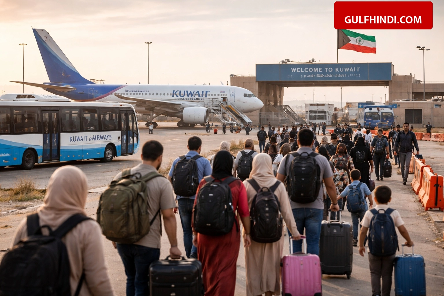 - कुवैत के गृह मंत्रालय ने सभी लैंड बॉर्डर पर कर्मचारियों की संख्या बढ़ा दी है ताकि यात्रियों की वापसी में कोई परेशानी न हो।