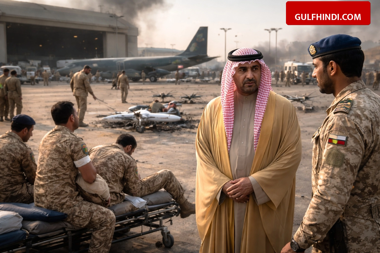 कुवैत के अहमद अल-जबर एयर बेस (Ahmad Al-Jaber Air Base) पर ड्रोन हमले की घटना सामने आई है। पिछले 24 घंटों में कुवैत की सशस्त्र बलों ने 7 दुश्मन ड्रोन को ट्रैक किया और कई को मार गिराने में सफलता पाई। इस घटना के बाद कुवैत के क्राउन प्रिंस शेख सबा खालिद अल-हमद अल-सबा ने शनिवार, 14 मार्च 2026 को सैन्य ठिकानों का दौरा किया। उन्होंने देश की संप्रभुता और सुरक्षा बनाए रखने के लिए सेना के जवानों की सतर्कता और उनकी बहादुरी की जमकर तारीफ की।