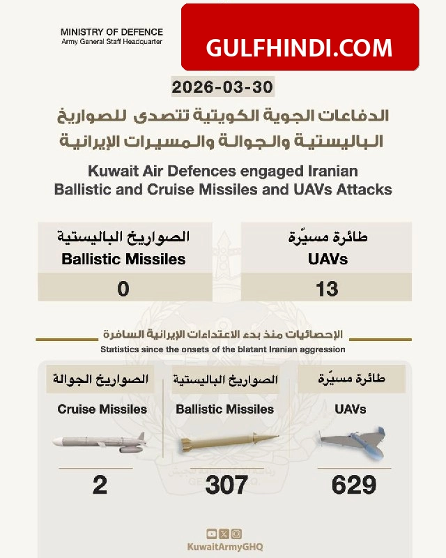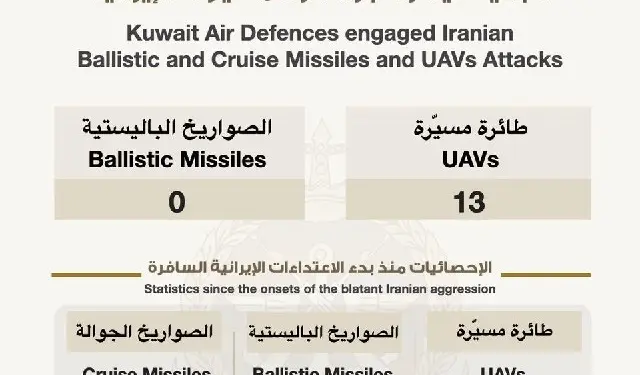 कुवैत में बीते 24 घंटों के दौरान रक्षा मंत्रालय ने 13 दुश्मन ड्रोन्स के हमले को नाकाम किया है। मंत्रालय ने जानकारी दी है कि एक ड्रोन हमले ने बिजली और पानी के प्लांट को निशाना बनाया, जिसमें काम कर रहे एक भारतीय नागरिक की मौत हो गई। इस हमले से प्लांट की सर्विस बिल्डिंग को बहुत नुकसान पहुंचा है। कुवैत की सेना और सुरक्षा बल फिलहाल हाई अलर्ट पर हैं और स्थिति पर नजर रखे हुए हैं ताकि बिजली और पानी की सप्लाई में कोई रुकावट न आए।