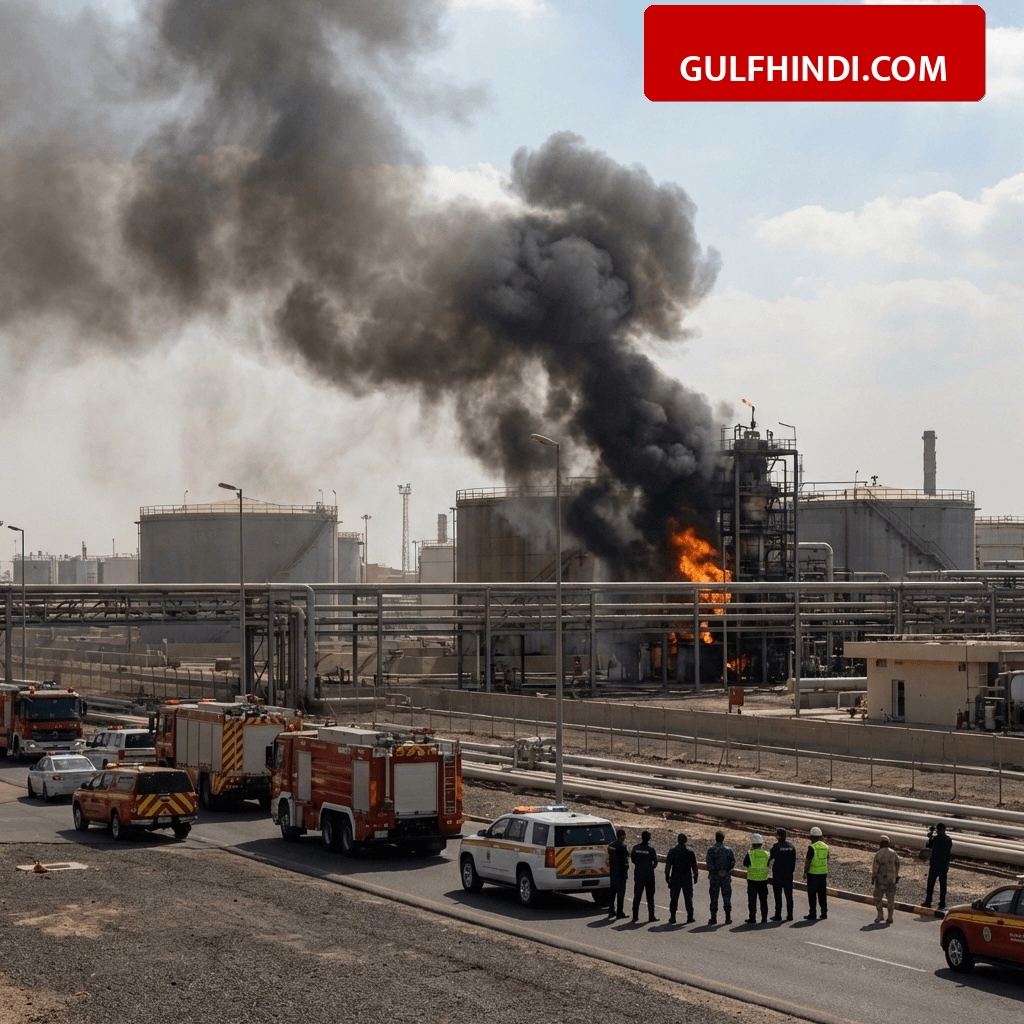 3 अप्रैल 2026 Mina Al-Ahmadi रिफाइनरी यूनिट्स में ड्रोन अटैक और आग।