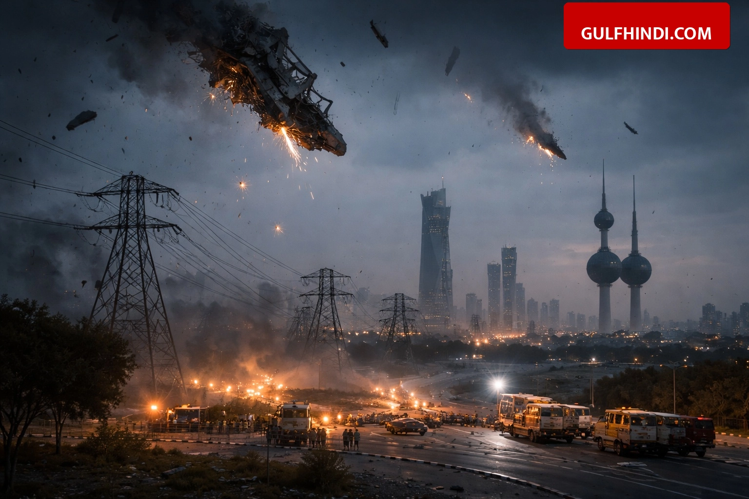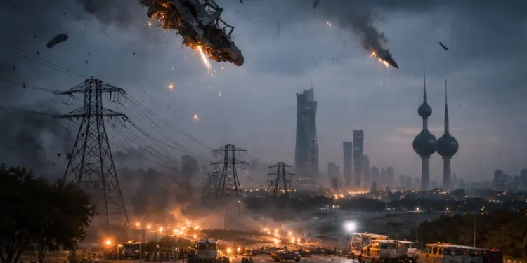 कुवैत में आसमान से गिरा मलबा, बिजली की 7 बड़ी लाइनें हुई ठप, कई इलाकों में छाया अंधेरा