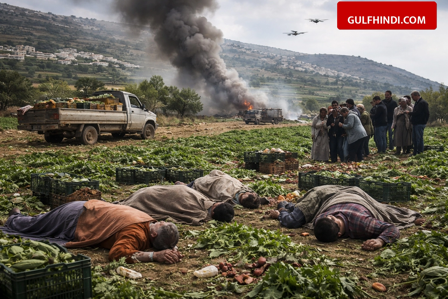 28 मार्च, 2026 को दक्षिणी लेबनान में इजरायली हवाई हमले में चार किसानों की मौत हो गई और नौ अन्य घायल हो गए. यह घटना क्षेत्र में लगातार हो रहे हमलों का एक हिस्सा है. नागरिक रक्षा अधिकारियों ने इन मौतों की पुष्टि की है. पूरे क्षेत्र में तनाव बहुत ज्यादा बढ़ गया है, जहाँ लगातार हमले और जवाबी हमले हो रहे हैं.