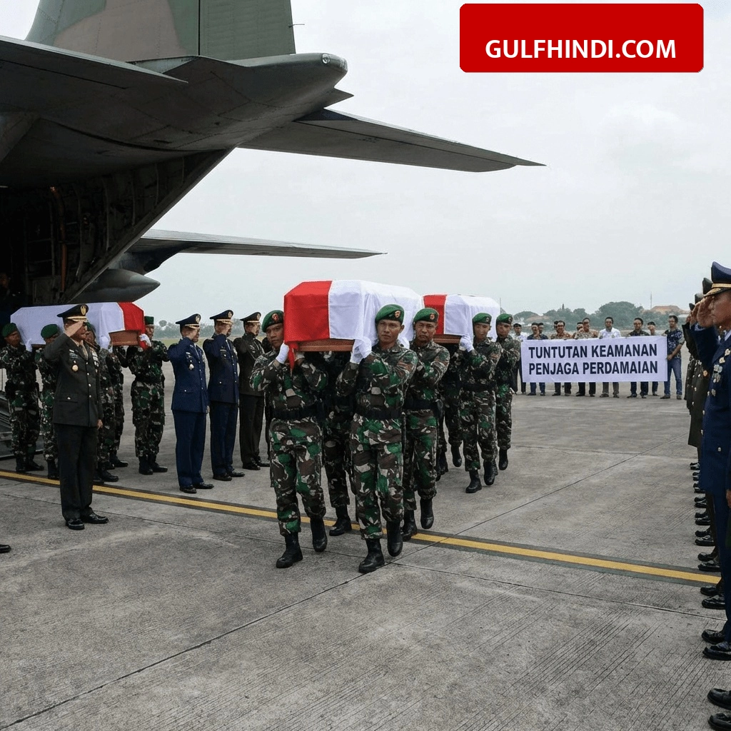लेबनान में संयुक्त राष्ट्र के शांति मिशन पर तैनात इंडोनेशिया के तीन वीर जवानों के शव 4 अप्रैल 2026 को अपने वतन वापस पहुंचे। जकार्ता के सोएकरनो-हट्टा हवाई अड्डे पर ताबूतों के पहुंचते ही माहौल काफी गमगीन हो गया। इन सैनिकों के ताबूतों को इंडोनेशिया के राष्ट्रीय झंडे में लपेटकर लाया गया था, जहां राष्ट्रपति प्रबोवो सुबियांतो ने खुद मौजूद रहकर उन्हें श्रद्धांजलि अर्पित की। सैन्य सम्मान के साथ इन जवानों को उनके अंतिम सफर पर रवाना किया गया और एयरपोर्ट पर मौजूद अधिकारियों और परिवार के सदस्यों की आंखें नम थीं।