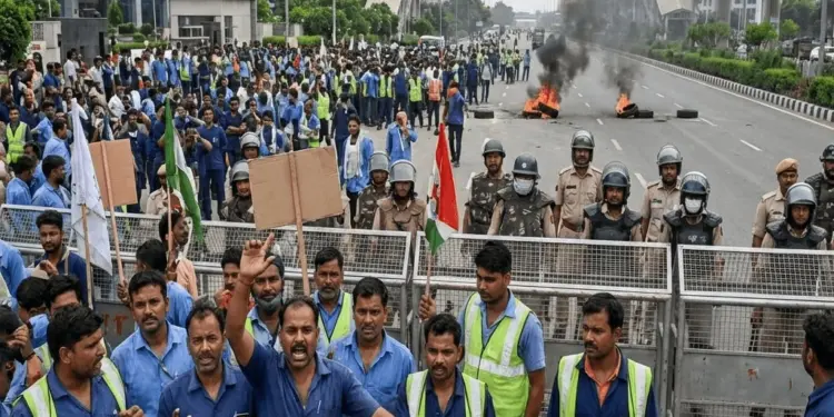 नोएडा के इंडस्ट्रियल एरिया में पिछले चार दिनों से चल रहा मज़दूरों का विरोध प्रदर्शन हिंसक हो गया। 13 अप्रैल को मज़दूरों ने जमकर तोड़फोड़ की और पुलिस की गाड़ियों में आग लगा दी। इस हंगामे की बड़ी वजह अमेरिका और इसराइल का ईरान के साथ युद्ध है, जिससे दुनिया भर में महंगाई बढ़ गई है और आम मज़दूरों की आर्थिक स्थिति खराब हो गई है।