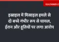 इस्राइल में मिसाइल हमले से दो बच्चे गंभीर रूप से घायल, ईरान और हूतियों पर लगा आरोप