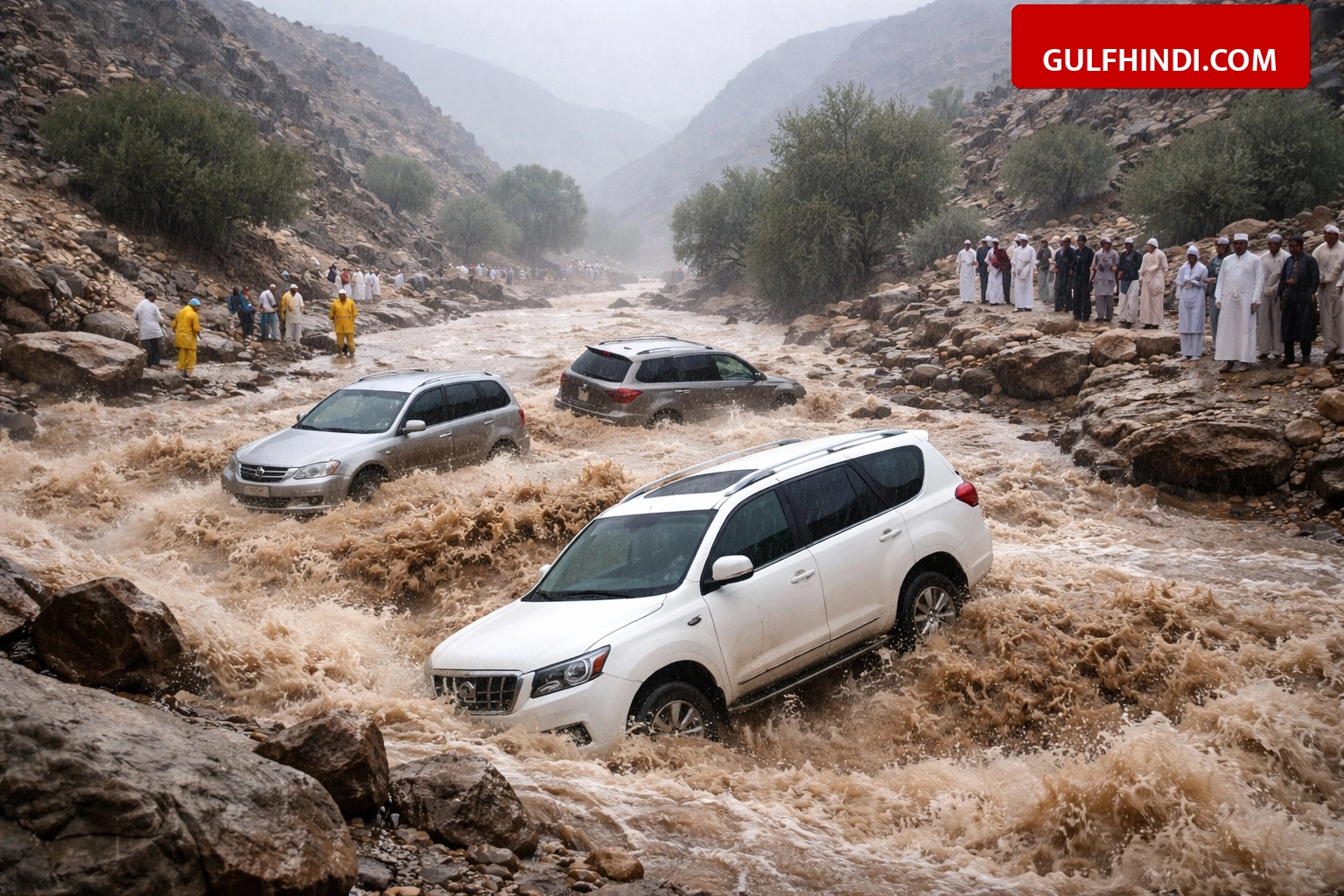 हादसे की जानकारी मिलते ही सिविल डिफेंस और एंबुलेंस की टीमें मौके पर पहुंच गईं और तुरंत बचाव कार्य शुरू किया गया। पानी के तेज बहाव में फंसी गाड़ियों में मौजूद लोगों को निकालने की कोशिश की गई। बचाव दल एक व्यक्ति को सुरक्षित बाहर निकालने में कामयाब रहा लेकिन दुर्भाग्य से एक व्यक्ति की जान चली गई। अधिकारियों के मुताबिक लापता व्यक्ति को ढूंढने के लिए प्रभावित इलाके में बड़े स्तर पर सर्च ऑपरेशन चलाया जा रहा है।