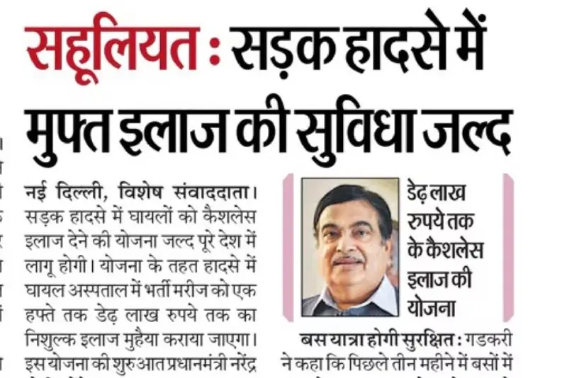 सड़क हादसे के शिकार लोगों के लिए संजीवनी, अस्पताल में भर्ती होने के 7 दिनों तक मिलेगा 1.5 लाख रुपये तक का मुफ्त इलाज