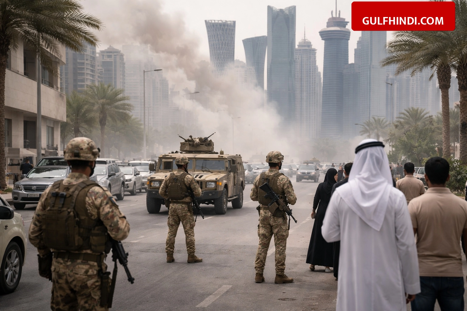 • 15 और 16 मार्च 2026 की रात दोहा के आसमान में तेज रोशनी और धमाके देखे गए।