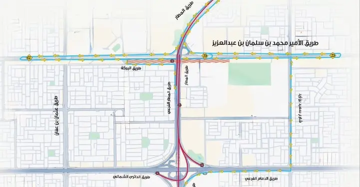 अखबार 24 की रिपोर्ट और ट्रैफिक विभाग के अनुसार, यह आंशिक बंदी है। एयरपोर्ट रोड का वह हिस्सा बंद किया जा रहा है जो Dammam Road और Prince Mohammed bin Salman Road के चौराहे के बीच आता है।