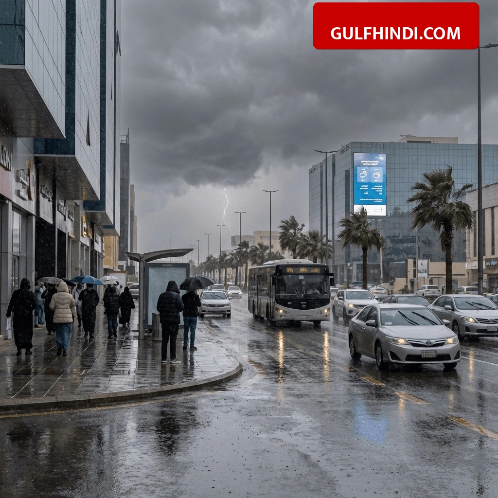 मौसम विभाग (NCM) के मुताबिक रियाद में सोमवार, 13 अप्रैल 2026 तक भारी बारिश, बिजली कड़कने और ओले गिरने की संभावना है। इसके साथ ही तेज हवाएं भी चलेंगी जिससे आम जनजीवन पर असर पड़ सकता है। सऊदी सिविल डिफेंस ने लोगों से अपील की है कि वे बाढ़ वाले इलाकों, घाटियों और पानी भरे रास्तों से दूर रहें।