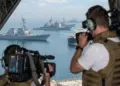 रूस ने ईरान के Bushehr परमाणु बिजली संयंत्र से अपने लगभग सभी कर्मचारियों को वापस बुला लिया है। रूस ने चेतावनी दी कि अगर इस प्लांट के पास हमला हुआ तो यह चेरनोबिल से भी बड़ी परमाणु आपदा बन सकता है। दूसरी तरफ, राष्ट्रपति Donald Trump ने 14 अप्रैल को Strait of Hormuz में ईरानी बंदरगाहों की नौसैनिक नाकेबंदी करने का आदेश दिया।