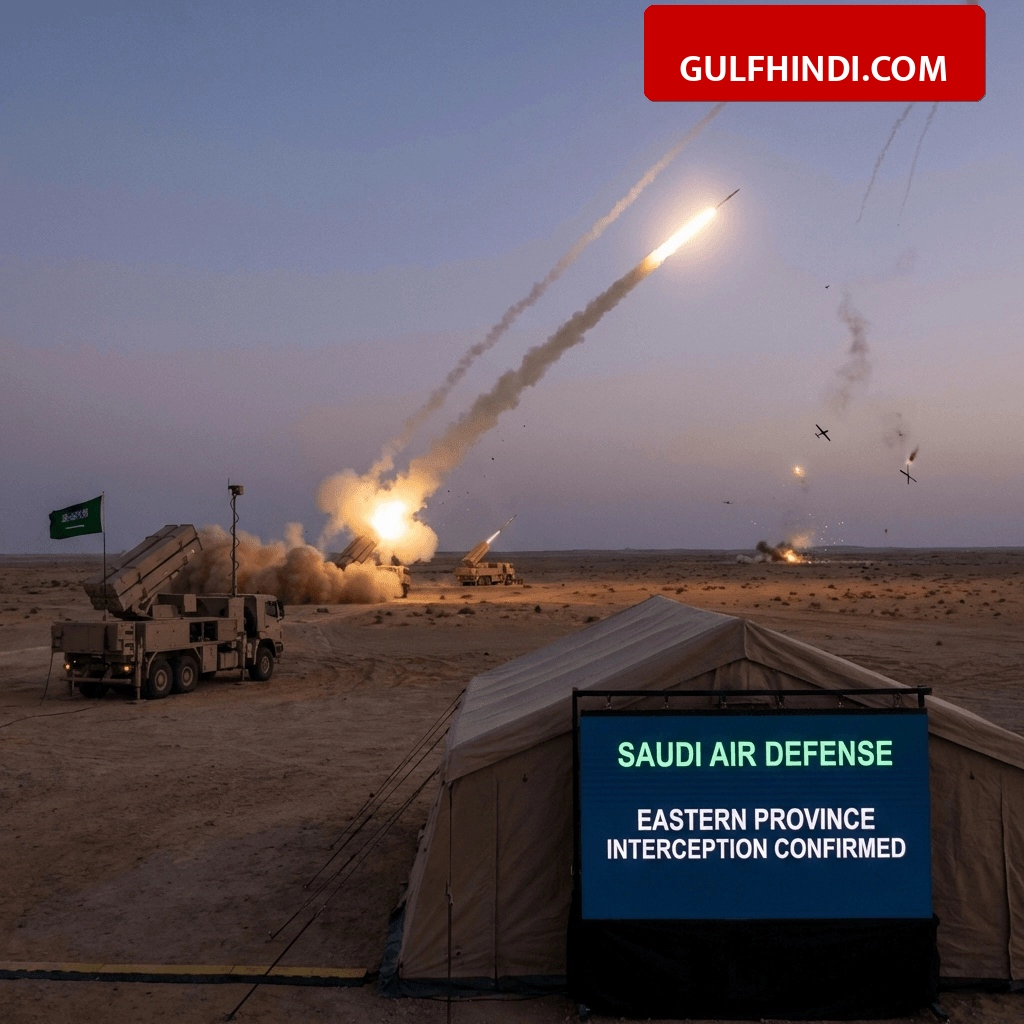 सऊदी अरब की एयर डिफेंस यूनिट ने गुरुवार 2 अप्रैल 2026 को ईस्टर्न प्रोविंस (Eastern Province) को निशाना बनाकर दागी गई एक बैलिस्टिक मिसाइल को सफलतापूर्वक हवा में ही नष्ट कर दिया। रक्षा मंत्रालय के प्रवक्ता मेजर जनरल Turki Al-Malki ने इस खबर की पुष्टि करते हुए बताया कि मिसाइल के साथ-साथ पांच ड्रोन भी मार गिराए गए हैं। यह कार्रवाई देश की सुरक्षा को ध्यान में रखते हुए तत्परता से की गई।