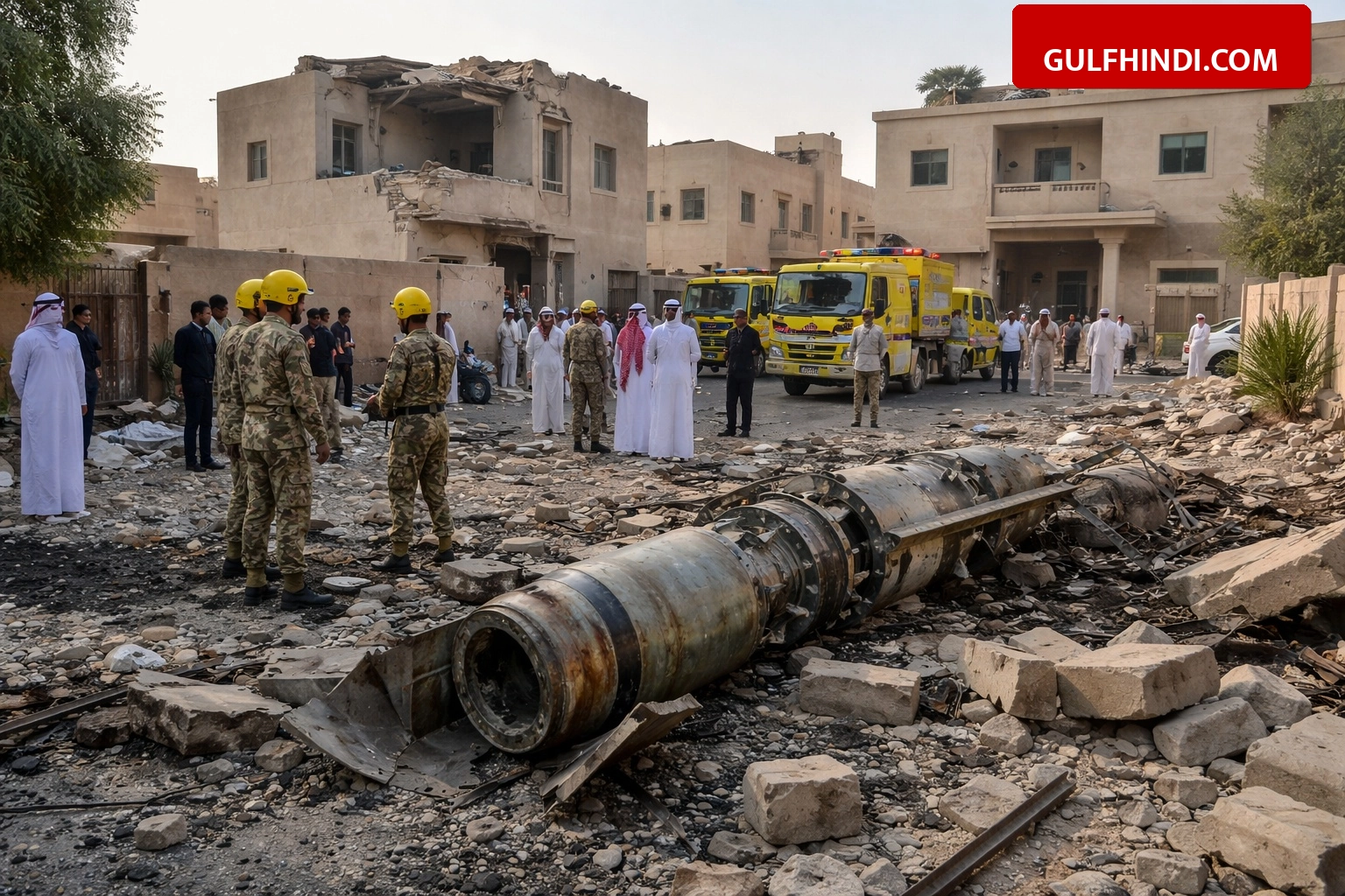 सऊदी सिविल डिफेंस की टीमों ने मौके पर पहुंचकर मलबे से हुए नुकसान का जायजा लिया। घटना की मुख्य बातें नीचे दी गई हैं: