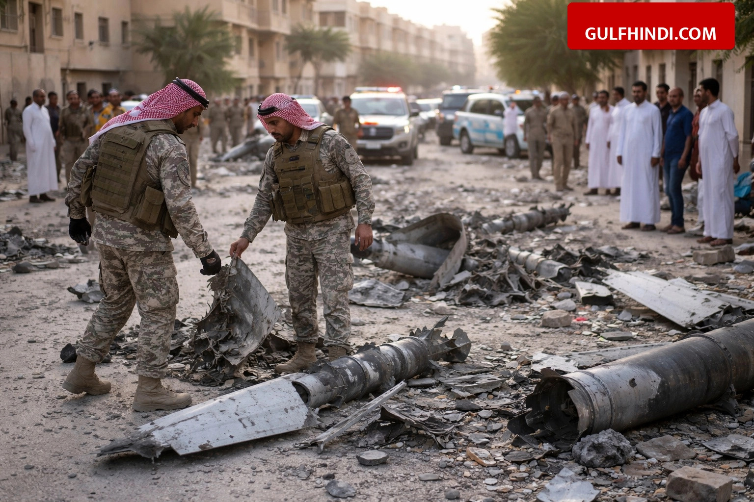 सऊदी सिविल डिफेंस (Saudi Civil Defense) ने जानकारी दी है कि जब एक बैलिस्टिक मिसाइल को हवा में नष्ट किया गया, तो उसका मलबा पूर्वी प्रांत के एक रिहायशी मोहल्ले में दो इमारतों पर जाकर गिरा। राहत की बात यह रही कि इनमें से एक इमारत निर्माणाधीन थी और वहां कोई मौजूद नहीं था। पूरी घटना में किसी भी व्यक्ति के हताहत होने या घायल होने की खबर नहीं है, केवल मामूली संपत्ति का नुकसान हुआ है।