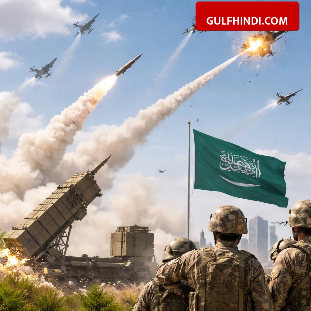 2 अप्रैल की सुबह सऊदी अरब और खाड़ी क्षेत्र के अन्य देशों में तनाव की स्थिति देखी गई। सऊदी अरब के रक्षा मंत्रालय ने जानकारी दी कि उन्होंने ईरान की तरफ से दागे गए एक बैलिस्टिक मिसाइल और एक ड्रोन को हवा में ही नष्ट कर दिया है। यह कार्रवाई पूर्वी क्षेत्र की सुरक्षा के लिए की गई, जहां मिसाइल का मलबा गिरने की वजह से एक सड़क को कुछ समय के लिए बंद करना पड़ा। फिलहाल सुरक्षा बल स्थिति पर पूरी तरह नजर बनाए हुए हैं।