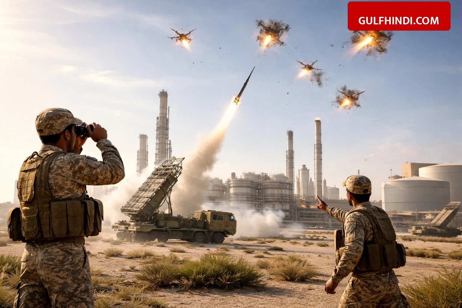 सऊदी अरब के पूर्वी क्षेत्र (Eastern Province) में सुरक्षा बलों ने एक बड़ी साजिश को नाकाम कर दिया है। 18 मार्च 2026 को सऊदी एयर डिफेंस ने 5 ड्रोनों को हवा में ही नष्ट कर दिया, जो एक प्रमुख एनर्जी प्लांट (Energy Plant) को निशाना बनाने की कोशिश कर रहे थे। इस घटना के बाद पूरे इलाके में सुरक्षा बढ़ा दी गई है और जांच जारी है।