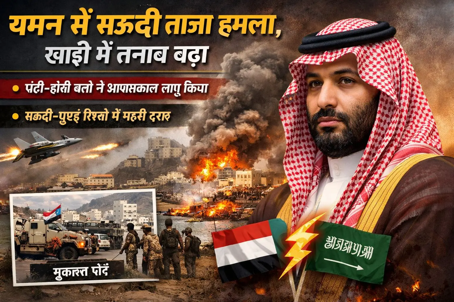 यमन के मुक़ल्ला (Mukalla) बंदरगाह पर सऊदी अरब के ताज़ा हवाई हमलों ने न केवल यमन में खलबली मचा दी है, बल्कि खाड़ी के दो सबसे ताकतवर देशों—सऊदी अरब और संयुक्त अरब अमीरात (UAE)—के बीच खुली दुश्मनी के संकेत भी दे दिए हैं।