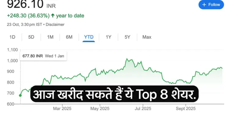 Shares to buy today 24 oct: दिवाली के बाद से ही बाज़ार जोश में है और 24 अक्टूबर को भी ट्रेडर्स के लिए एक और धमाकेदार दिन बनने जा रहा है। निफ्टी अपने अहम स्तरों के आस-पास टिक कर बैठा है और ब्रोकर्स की नजर अब IT, बैंकिंग और इंडस्ट्रियल शेयरों पर है। एक्सपर्ट्स का कहना है कि अगर मार्केट ने रेजिस्टेंस तोड़ दिया, तो नई ऊँचाइयाँ बस कुछ कदम दूर होंगी।