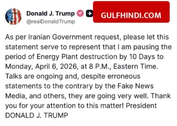 अमेरिकी राष्ट्रपति डोनाल्ड ट्रंप ने ईरान को दी गई डेडलाइन को बढ़ाकर 6 अप्रैल 2026 कर दिया है। यह फैसला हारमुज जलडमरूमध्य (Strait of Hormuz) को दोबारा पूरी तरह खोलने को लेकर लिया गया है। ट्रंप ने बताया कि फिलहाल बातचीत के लिए काफी समय है और वे अधिकारियों से मिल रहे फीडबैक के आधार पर अगला कदम उठाएंगे। इससे पहले ईरान को 26 मार्च तक का समय दिया गया था, जिसे अब बढ़ा दिया गया है ताकि कूटनीतिक रास्तों से समाधान निकाला जा सके।