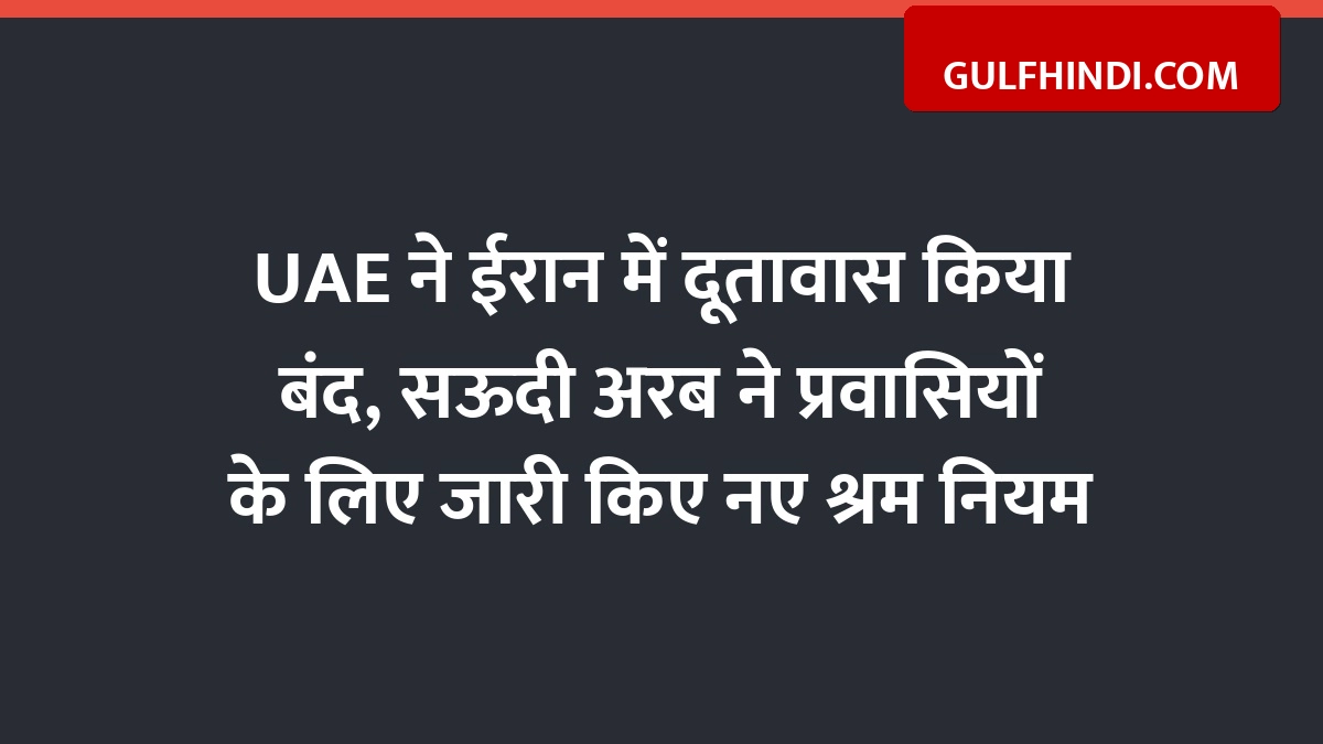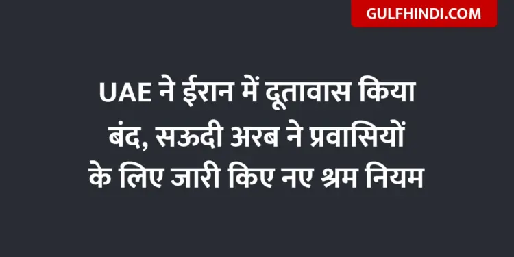 UAE ने ईरान में दूतावास किया बंद, सऊदी अरब ने प्रवासियों के लिए जारी किए नए श्रम नियम