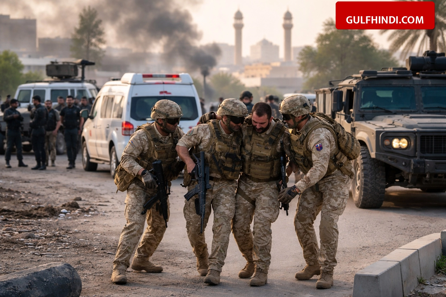 बहरीन में हुए एक हमले के बाद खाड़ी क्षेत्र में तनाव बढ़ गया है। संयुक्त अरब अमीरात (UAE) के रक्षा मंत्रालय ने जानकारी दी है कि ईरान की तरफ से किए गए हमले में उनके 5 सुरक्षाकर्मी घायल हुए हैं। इस घटना में मोरक्को के एक नागरिक ठेकेदार की जान भी चली गई है। यह हमला उस समय हुआ जब ये कर्मी बहरीन में एक सामान्य सुरक्षा मिशन पर तैनात थे।