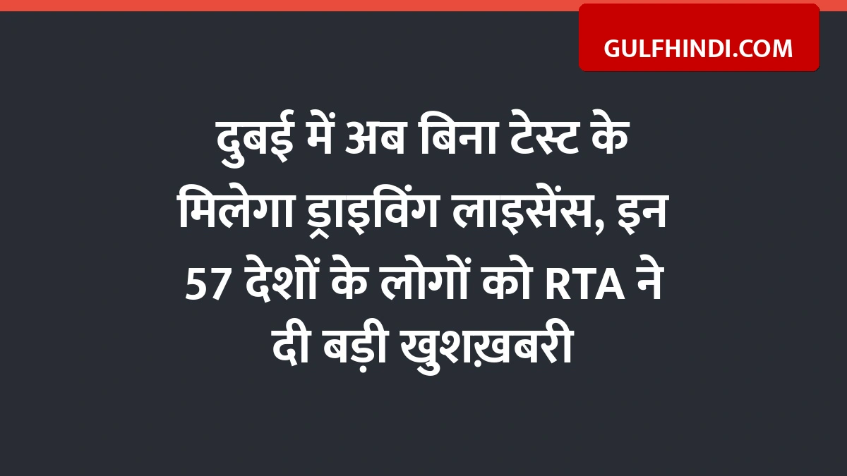 दुबई में रहने वाले विदेशी नागरिकों (Expats) के लिए एक बहुत ही अच्छी खबर सामने आई है। अगर आपके पास अपने देश का ड्राइविंग लाइसेंस है, तो अब आपको दुबई में ड्राइविंग टेस्ट देने की जरूरत नहीं पड़ेगी। Roads and Transport Authority (RTA) के मुताबिक, 57 देशों के नागरिक अपने लाइसेंस को सीधे यूएई के लाइसेंस से बदल सकते हैं।