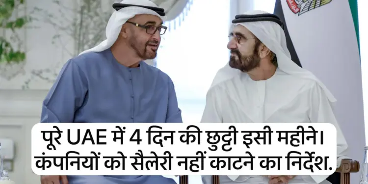 UAE सरकार ने 1 दिसंबर (सोमवार) और 2 दिसंबर (मंगलवार) 2025 को ईद अल एतिहाद (नेशनल डे) के मौके पर संघीय मंत्रालयों और सरकारी संस्थाओं के लिए पेड हॉलिडे घोषित कर दी है। दफ्तर 3 दिसंबर (बुधवार) से फिर खुलेंगे। इस फैसले से निवासियों को चार दिनों का लंबा वीकेंड मिलेगा।