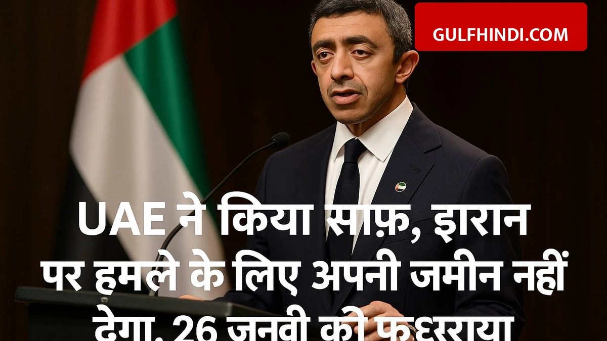 संयुक्त अरब अमीरात (UAE) ने एक बार फिर साफ किया है कि वह ईरान पर किसी भी सैन्य हमले के लिए अपनी ज़मीन, हवाई क्षेत्र या पानी का इस्तेमाल नहीं होने देगा. यूएई के विदेश मंत्रालय (MoFA) ने 26 जनवरी, 2026 को इस नीति को दोहराया है. यह बयान ऐसे समय में आया है जब क्षेत्र में ईरान और अमेरिका के बीच तनाव बढ़ रहा है.