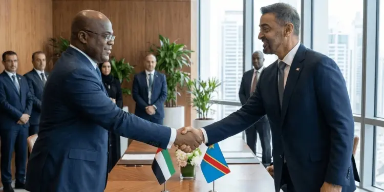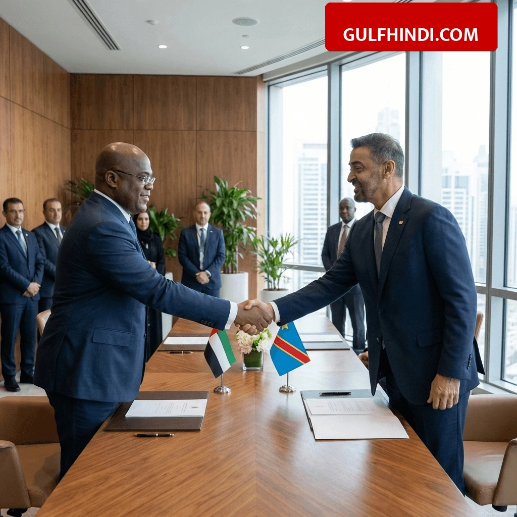 संयुक्त अरब अमीरात (UAE) के राष्ट्रपति महामहिम शेख मोहम्मद बिन जायद अल नाहयान ने कांगो लोकतांत्रिक गणराज्य के राष्ट्रपति फेलिक्स त्शिसेकेदी का अबू धाबी में स्वागत किया। 4 अप्रैल 2026 को हुई इस मुलाकात में दोनों देशों के बीच आपसी सहयोग और विकास के रिश्तों को मजबूत करने पर विस्तार से बात की गई। यह बैठक ऐसे समय में हुई है जब दोनों देश एक व्यापक आर्थिक भागीदारी समझौते (CEPA) के तहत अपने व्यापारिक हितों को आगे बढ़ाने की कोशिश कर रहे हैं।