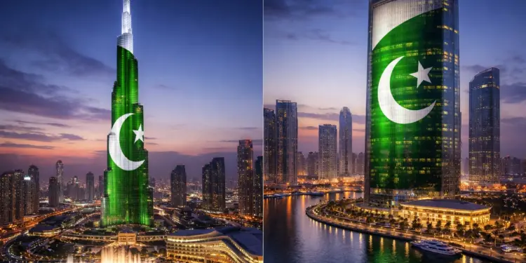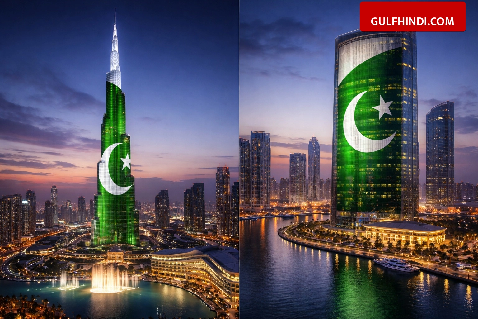 UAE और कतर में पाकिस्तानी झंडे की रोशनी, बुर्ज खलीफा और एडनॉक टावर पर दिखी शानदार झलक